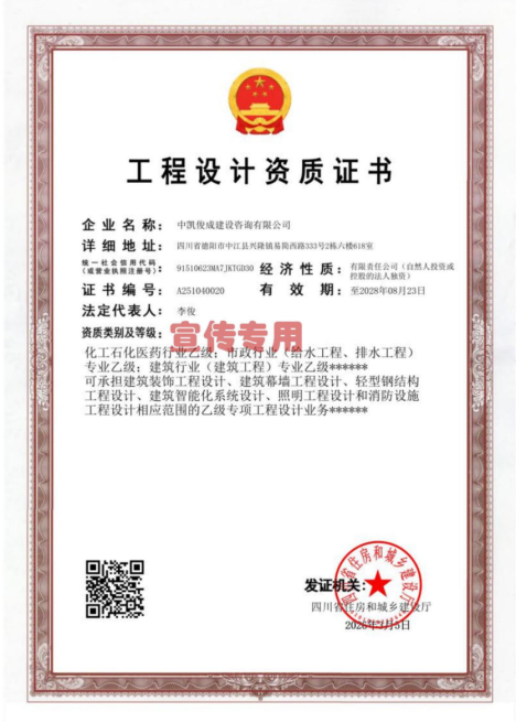 近日,經(jīng)四川省住房和城鄉(xiāng)建設(shè)廳嚴(yán)格審批,我司成功獲批化工石化醫(yī)藥行業(yè)乙級設(shè)計(jì)資質(zhì),企業(yè)綜合實(shí)力再獲權(quán)威認(rèn)證,發(fā)展版圖再拓新域!